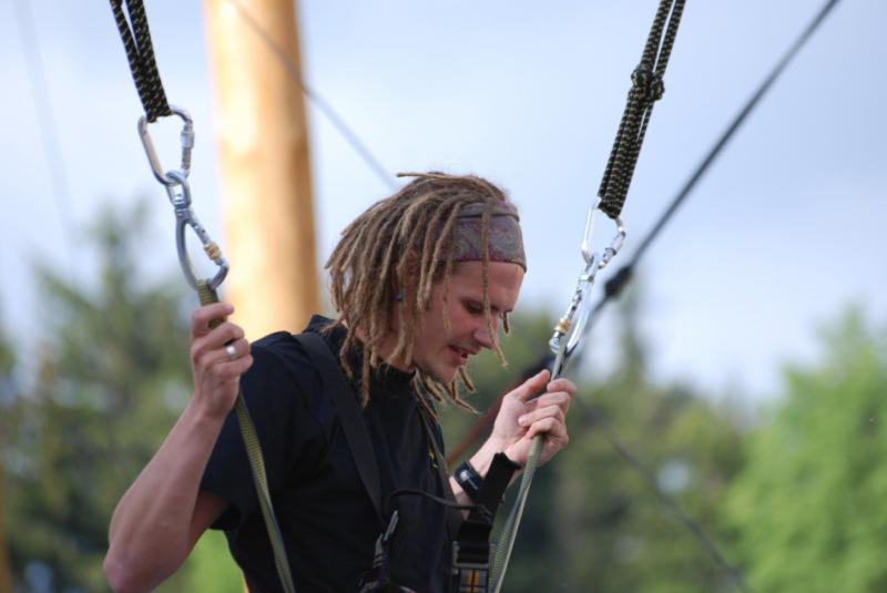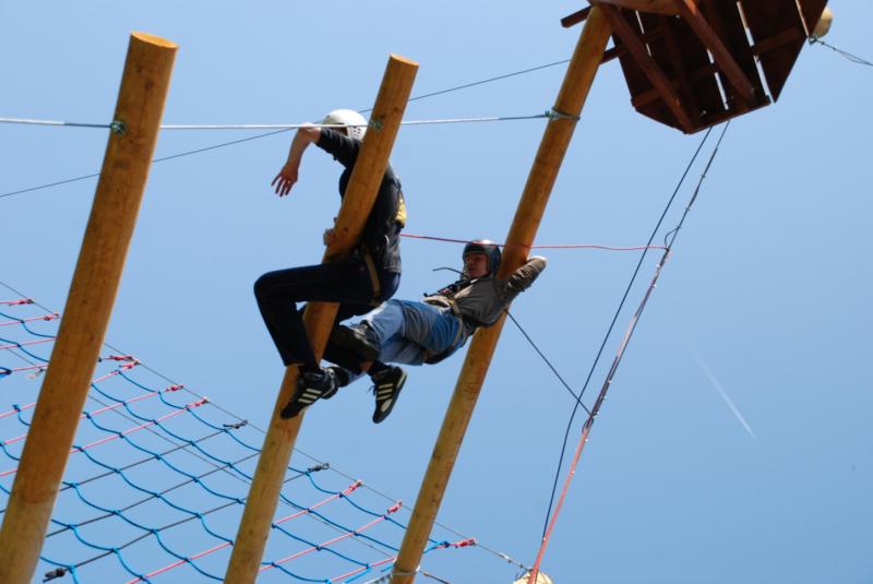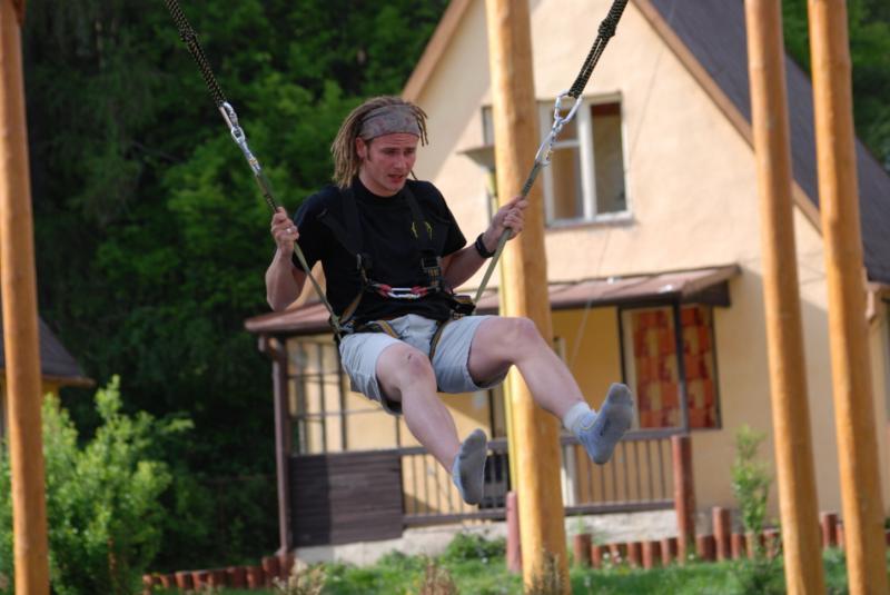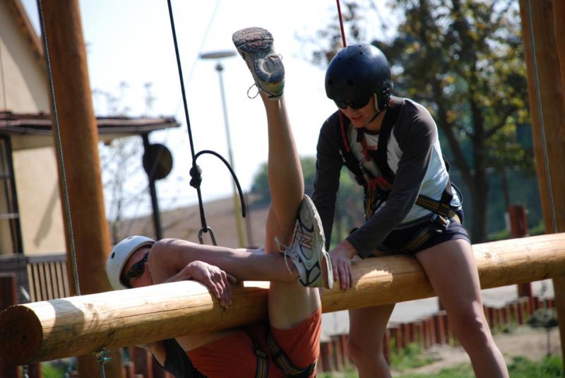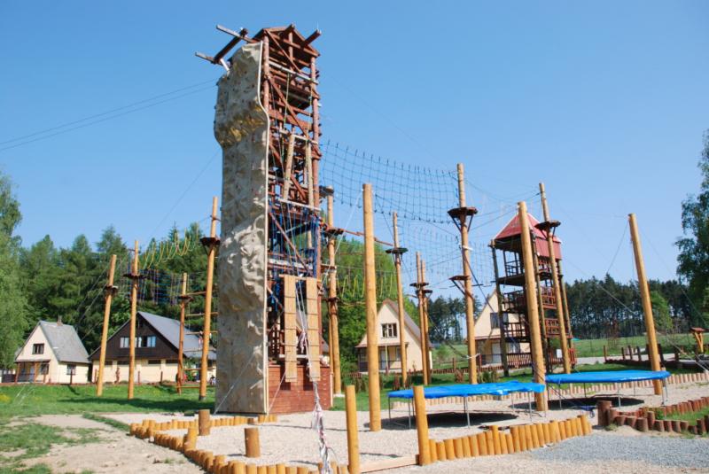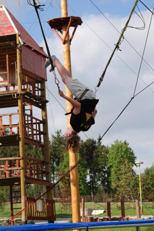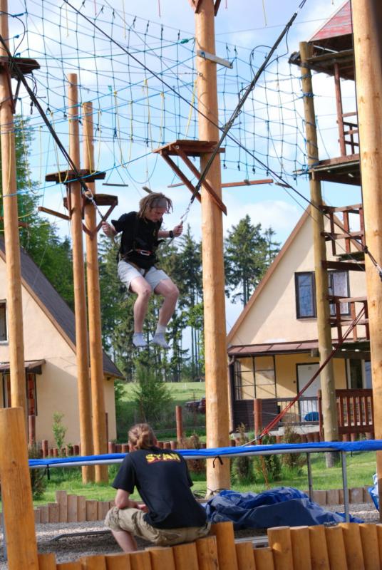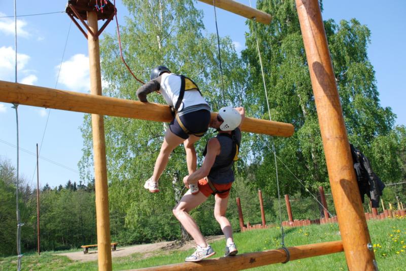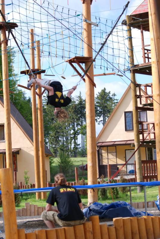 Většina z vás již někdy lezla po provazovém žebříku. Ale lézt po něm do výše deseti metrů? A pozor, žebřík to není jen tak ledajaký. Je totiž takový lehce přerostlý...Dokonce tak, že se na něm leze ve dvou a vzdálenost jednotlivých příček je někdy dokonce více než metr. Ano, je to, jako kdybyste lezli po provazovém žebříku obra Kyklopa. S nepatrnou výhodou, budete mít na hlavičce helmu a budete jištěni. Je však potřeba počítat s vynaložením velkého úsilí a vynalézavosti, abysto se vyšplhali až k poslední příčce. Každému se to nepodaří, ale výzva je to veliká. Podobná atrakce by se měla objevit na podzim i v Rekreačním středisku Relaxa.