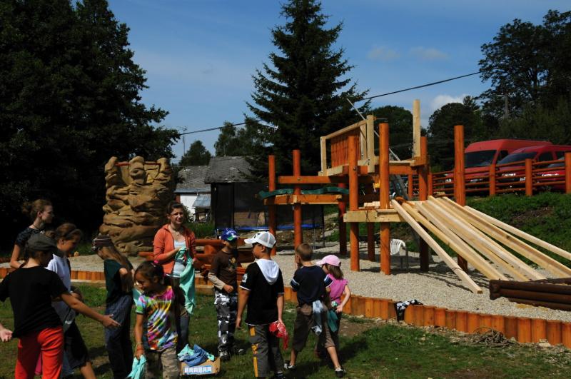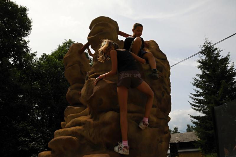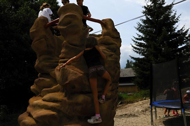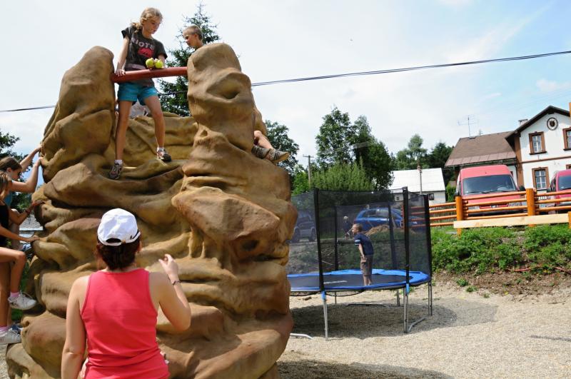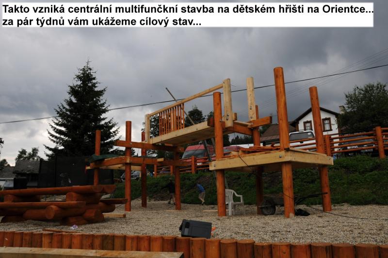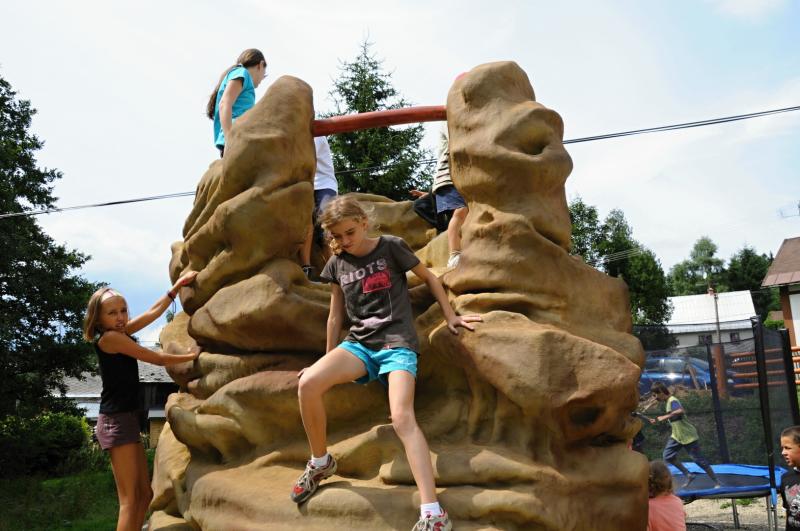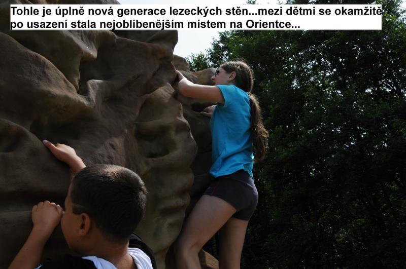 Stále častěji vyhledávají orientku pro aktivní rekreaci rodiče s dětmi...a s tímto bylo již od začátku počítáno, a tak děláme vše proto, aby i pro nejmenší hosty byla Orientka skutečným rájem, což znamená, že tu nesmí chybět pořádné dětské hřiště. Z půlky máme již hotovo, a teď by vše již mělo jít velmi rychle. Minulý týden jsme zprovoznili trampolínus ochrannou sítí, pískoviště a jednu z nejzajímavějších atrakcí - boulderovku - lezeckou stěnu v imitaci skutečné skály, nahoře dokonce s malou vyhlídkou, nabízející bezpočet cest k vrcholku...Ihned po její instalaci byla doslova obsypána dětmi. Hlavní prvek celého hřiště, který bude obsahovat houpačky, malý hrad, celou řadu lezeckých prvků a prolézaček a dvě skluzavky v tuto chvíli dokončujeme.