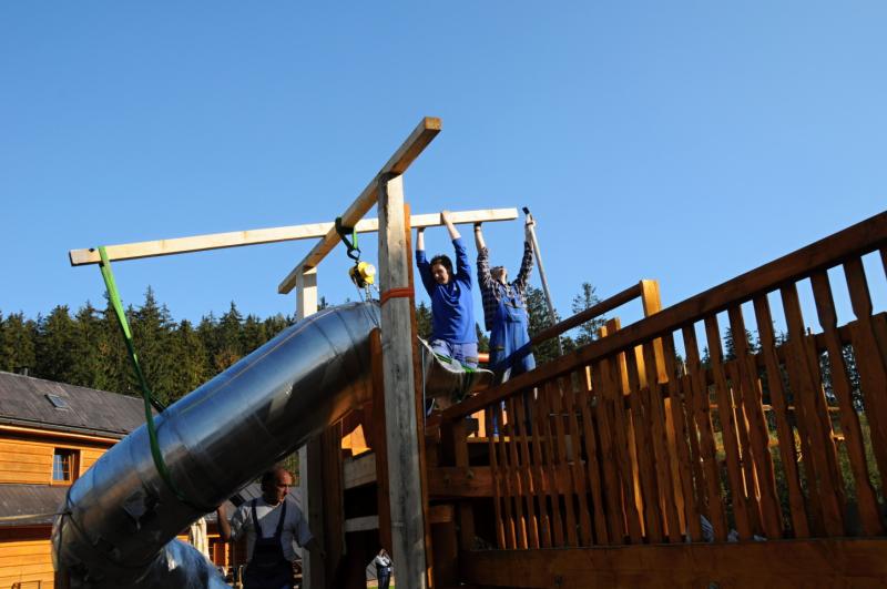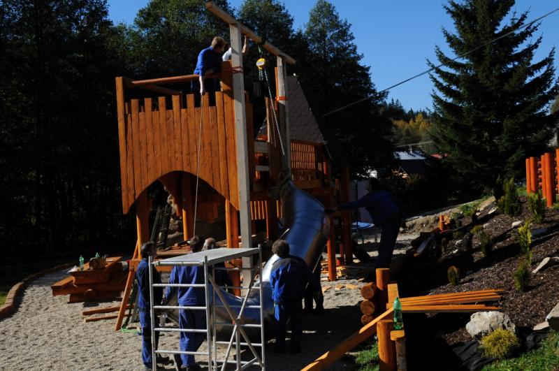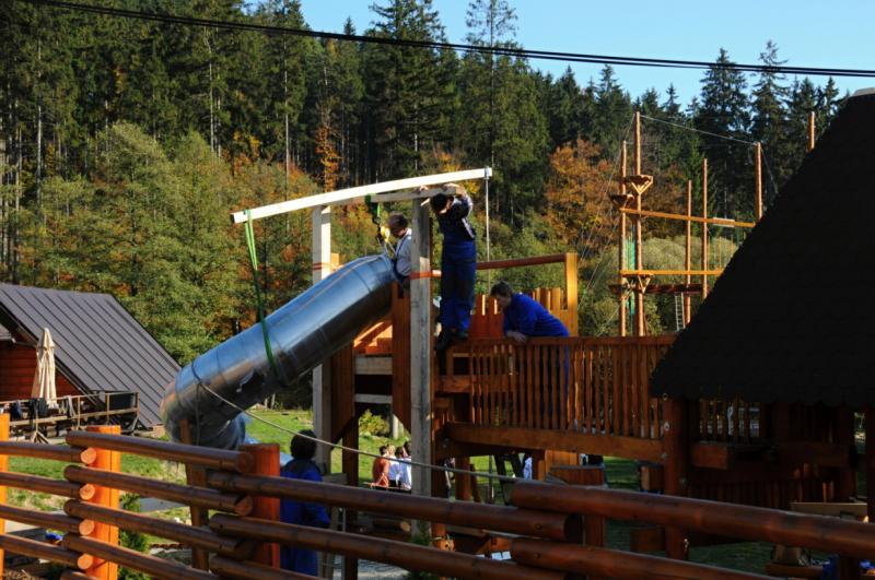 Největším soustem bylo unikátní 17 metrů vysoké multifunkční lanové centrum, které nabízí lanové atrakce ve třech patrech. A protože orientka má být i rájem pro nejmenší návštěvníky, nechybí zde ani báječné dětské hřiště. A to není zdaleka všechno. Orientka je v tuto chvíli místem, kde investujeme nejvíce prostředků a energie. V tuto chvíli se dokončuje stavební projekt pro další přístavbu (plánováno v roce 2013), ve které bude tolik aktivit a možností, že už netrpělivě čekáme, až vás s nimi seznámíme. Zatím se podívejte, jak se stavěl adrenalin park a dětské hřiště.