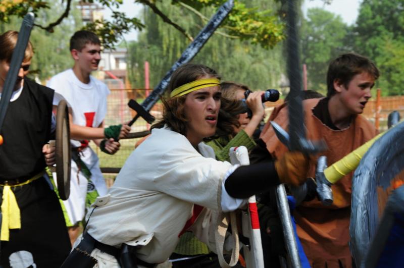 Kostýmy - už žádné každoroční stříhání a barvení prostěradel, Kdepak! Letos jsme se rozhodli pro radikální řešení. V tuto chvíli se už stříhá a šije, zkrátka vyrábí rovná stovka kostýmů (varkočů) z kvalitního a odolného materiálu, takže na vás bude při bitvách úplně jiný pohled! Kostýmy si představíme příště. To však neznamená, že si nemůžete dovézt vlastní kostým, naopak, je to žádané a vítané, toto je spíš řešení pro ty, kdo přijedou bez kostýmu, aby nám Jeruzalém či jiný hrad nedobývali v teplákách. To se zkrátka již k naší úrovni nehodí :-). Rodičům tím odpadnou nemalé starosti s výrobou kostýmu.