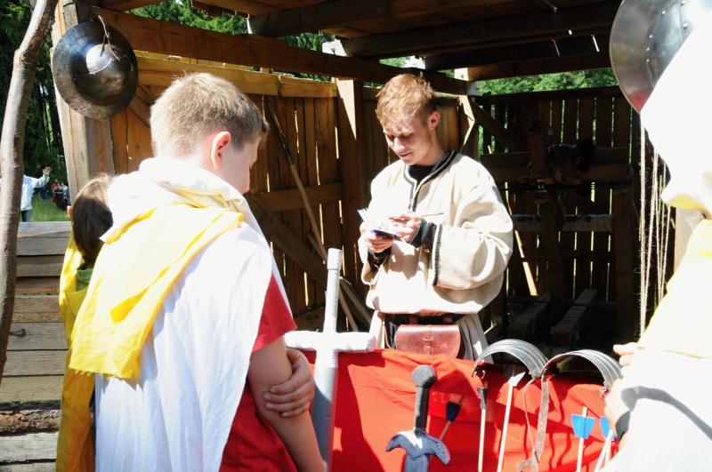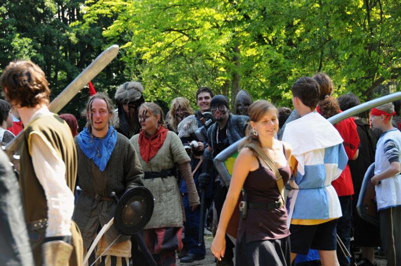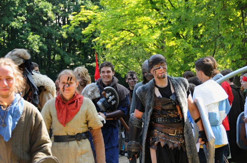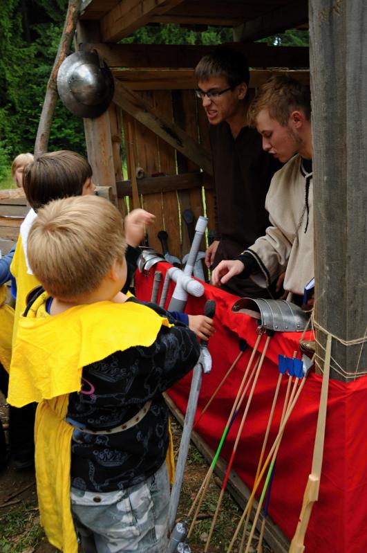 Ideální je vzít si rovnou z domu nějaký kostým, samozřejmě, že když někdo přijede bez kostýmu tak mu ho vyrobíme, ale ideální je mít nějaký základ z domu připravený. V nejhorším si třeba vzít bíle plátno, nebo bílé prostěradlo, tady už s tím něco vymyslíme. Ale každopádně bychom letos chtěli jít cestou, že tento kostým po táboře nezahodíte, ale že vás bude provázet i na dalších turnusech. Víte, ono je jednodušší na kostýmu pořádně zapracovat, než narychlo něco honem udělat, po táboře zahodit a pak dělat každý rok nový, to je zbytečná práce. Článek o tom, jak si připravit pěkný kostým, se objeví na našich stránkách do čtrnácti dnů. Stejně je to i s případným mečem, či jinou zbrojí, kdo si na výrobu netroufne, ten ji dostane od nás, kdo si troufne, nebo má šikovného tatínka, může postupovat podle návodu na webu, který se zde objeví stejně jako článek o kostýmech.