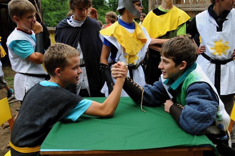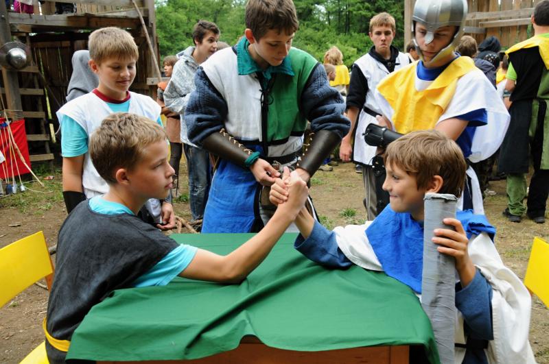 Pro ty, kteří jsou spíše mladší a na táboře STRONGHOLD byli jen jednou, nebo na tomto táboře ještě vůbec nebyli, (nebo byli třeba i dvakrát ale je jim třeba teprve 9 až 11 let), tak právě pro ty je přímo vytvořen turnus "Čtyři erby", je to ideální vstupní brána do středověkého světa STRONGHOLDU. Tábor STRONGHOLD - Soumrak Albionu je pak určen spíše starším. Takže ideální věková skupina pro tábor STRONGHOLD - Čtyři erby je 8 - 13 let, samozřejmě s tolerancí jednoho roku na každé straně. Přesně pro tuto věkovou skupinu je letos tento tábor "ušitý na míru".