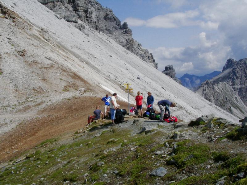 Startovali jsme z městečka Fulpmes. První dny expedice byl opravdu náročné, museli jsme nastoupat asi 1200 metrů, což nám dalo pořádně zabrat, nicméně jsme se velmi brzy dostali nad lesy a nad města a odměnou nám byly nádherné výhledy do krajiny, dostali jsme se do 2240 m.n.m. a stoupáme výš. Krásně svítí sluníčko a my si užíváme jeho horkých paprsků. V noci trochu hřmí, blesky proráží oblohu, ale neprší. Musíme překonat sedlo ve výšce 2750 m. Obloha se odpoledne zatahuje a my spěcháme k Regensburger Hütte, kdy nás při vstupu do dveří stihnou ještě polít provazce vody, venku se rozpoutalo peklo. Čekáme...Po několika hodinách jdeme v dešti stavět stany...Dnes bude zajímavá noc. Ráno vstáváme do krásného slunečného dne, fotíme, nahříváme se a kocháme se nádherou kolem, chystáme se také na Osten Knote Spitze, který má něco přes 3000 m.n.m....Bohužel nás po poledni před nejzajímavější částí výstupu chytá krupobití a my se vracím zpět ke stanům, které balíme a chystáme se na sestup....
