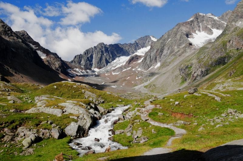 Naše první kroky vedly do nádherného rakouského pohoří, kde jsme týden pobyli a část pohoří přešli. Všude je mnoho vodopádů, zelených pastvin, potoků a jezírek, kde se dá večer příjemně opláchnout. Vemi často se zde mění počasí, ale ani déšť s krupobitím nemohou pokazit celkový dojem z tohoto zelenajícího se ráje.