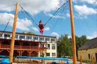 Bungee tramploína je trampolína kombinovaná s gumolany, díky kterým můžete skákat mnohem výše než na obyčejné trampolíně. Během výskoku můžete vyzkoušet různé akrobatické kousky, které normálně dělat nemůžete, velká odrazová plocha zajišťuje bezpečný dopad zpět na trampolínu.